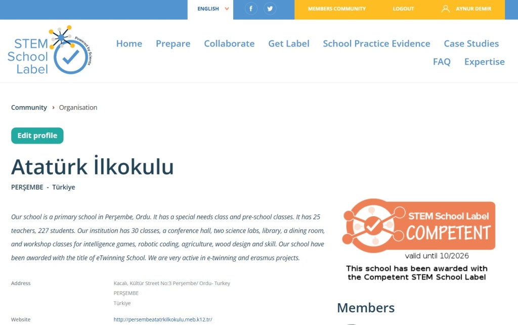 Okulumuz, Avrupa Birliği'nin bilim eğitimi topluluğu olan Scientix tarafından desteklenen "Yetkin STEM Okul Etiketi" almaya hak kazanmıştır. Böylece, Avrupa çapında işbirliğini teşvik eden ve destekleyen Scientix platformunun bir parçası olarak STEM (fen, teknoloji, mühendislik ve matematik) eğitimini geliştirmeyi ve güçlendirmeyi hedeflemekteyiz.